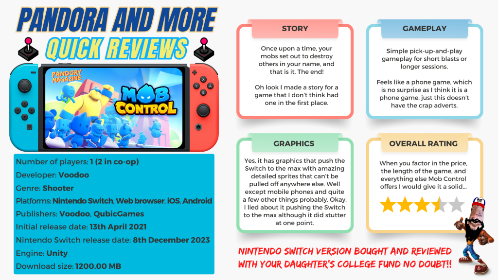 Home ยป Mob Control – Nintendo Switch Mob Control – Nintendo Switch Flea February 29, 2024 Posted in Gaming, Review 0 Likes 336 Views Share: TwitterFacebookPinterestRedditVKDiggLinkedinMix Related Articles 0 344 The Retro Shooter console gets the long-awaited update! 0 377 The Dark Tower of Power: The Vectrex the future is now! 0 380 Fruity Puzzler: What kind of melon would ignore this game?? 0 315 Zeey Discount Code – Money off -Expired Author: Flea Website